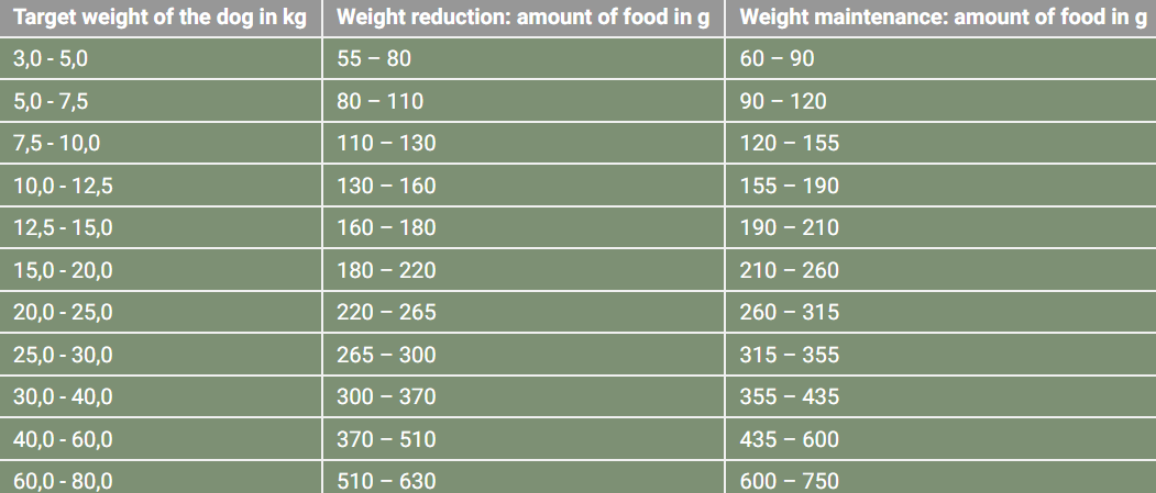 *Please discuss the target weight with your vet in advance. Target weight loss: approx. 1–2 % per week, always in relation to the current weight.